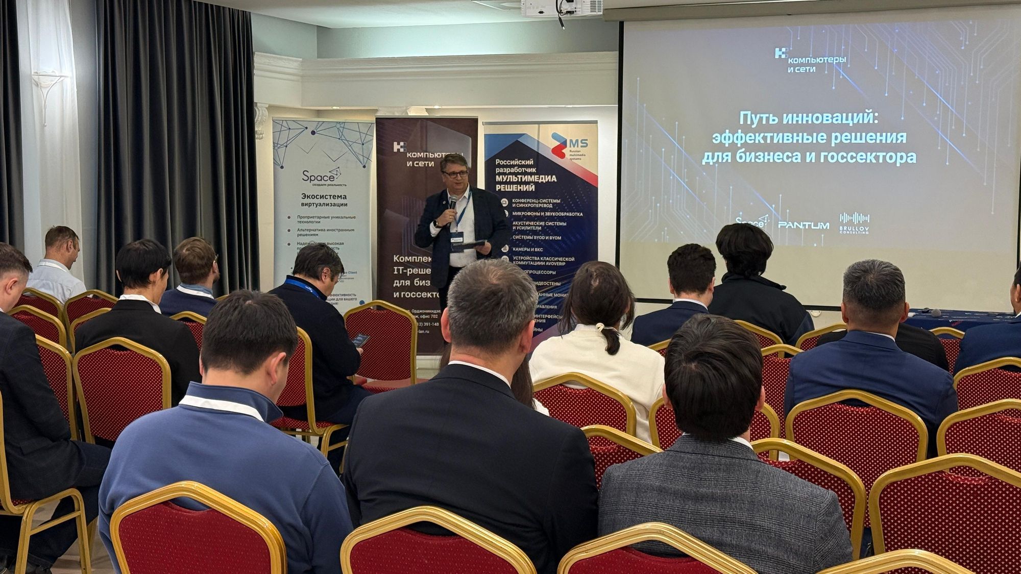 В рамках программы особое внимание уделялось практическим инструментам для повышения эффективности работы компаний. Партнёрами события стали компания RMS, представившая мультимедийные решения, компания Pantum с печатными решениями и экосистема виртуализации Space.