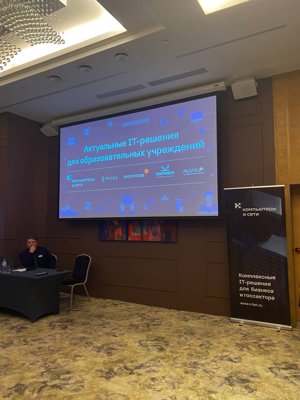 Мероприятие началось с доклада руководителя направления по ВКС и интерактивному оборудованию ГК «КОМПЬЮТЕРЫ И СЕТИ». Представитель компании «Катюша» рассказал о современном печатном оборудовании. Спикер из компании «Актру» выступил с докладом об инновационных технологиях гибридного обучения и опыте внедрения технологий «Актру» в вузах России. Представитель компании Macroscop рассказал о видеонаблюдении для образовательных учреждений. Спикеры из компании AUVIX рассказали, как мультимедийное оборудование Lumien помогает улучшить образовательный процесс и как управлять АВ-оборудованием в учебных аудиториях с помощью платформы BOOCO. Также с докладом об автоматизации процессов на базе продуктов 1С в образовательных учреждениях выступила менеджер по работе с клиентами ВЦ «КОМПЬЮТЕРЫ И СЕТИ».